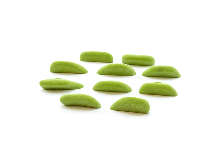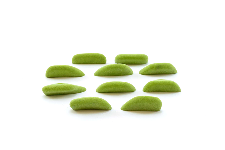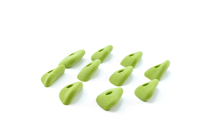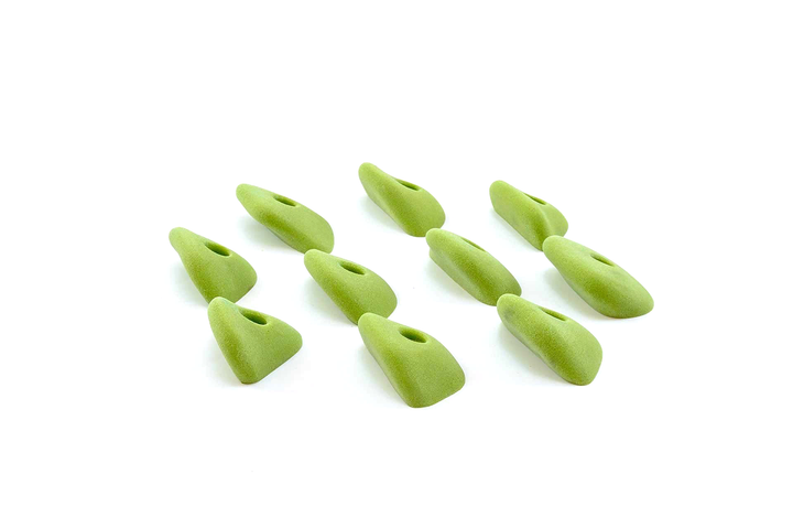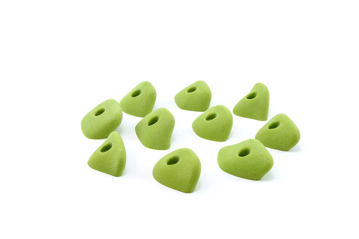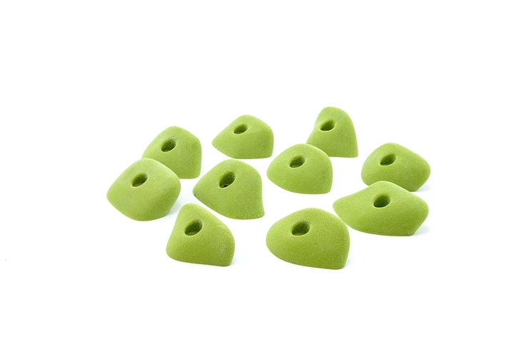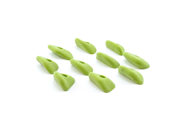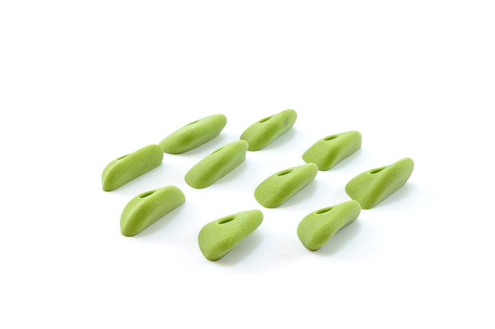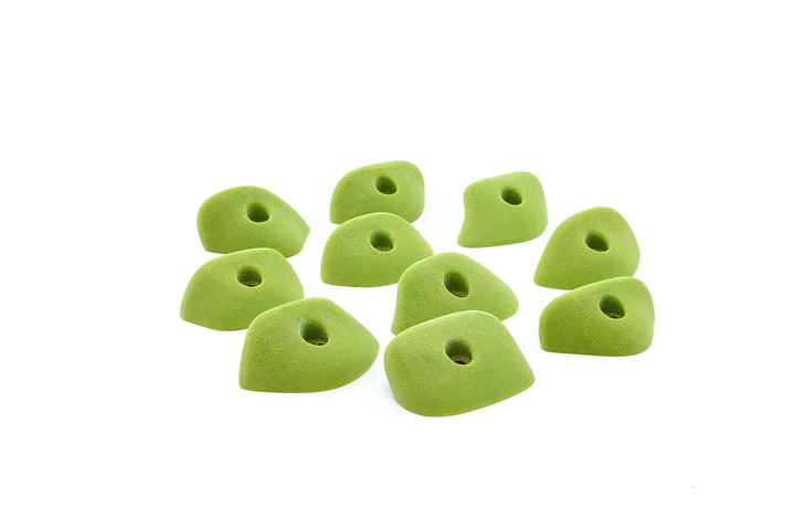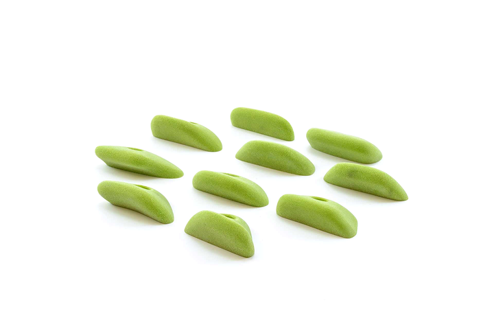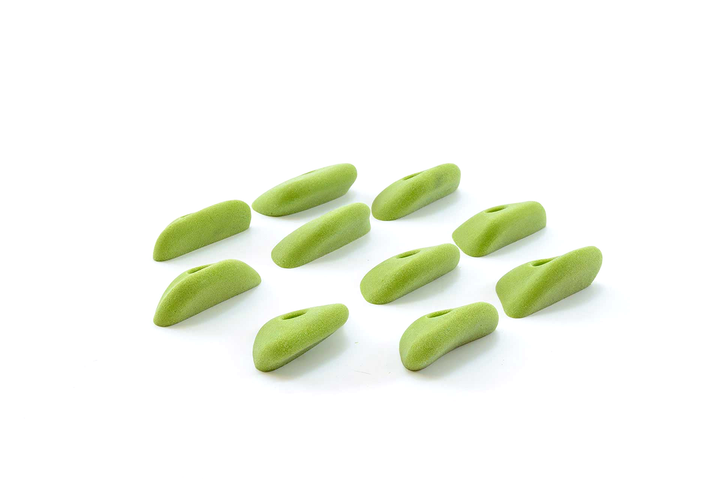 Unique set, slightly incut but basically feel like flat 2-pad finger ledges. Rounded edge radius but not puffy. Can be used on slight overhangs and still be in V4/5 range. Harder on steep, rec on low angle. Big holds for a small set. Jackie recommends these often.