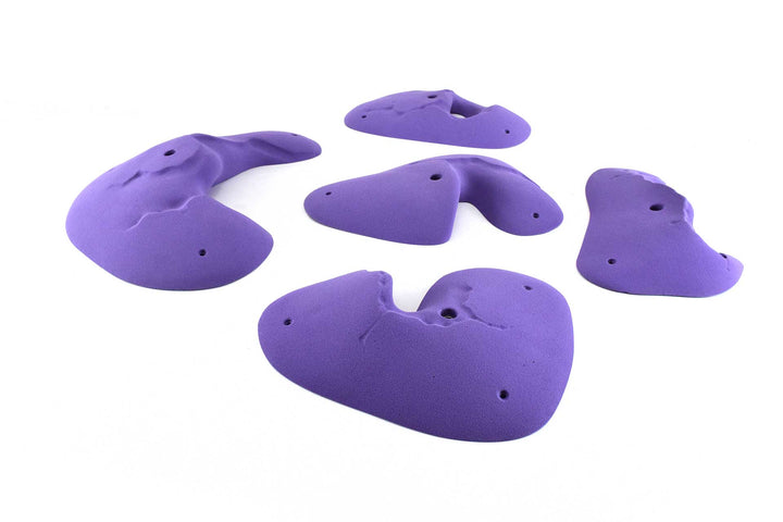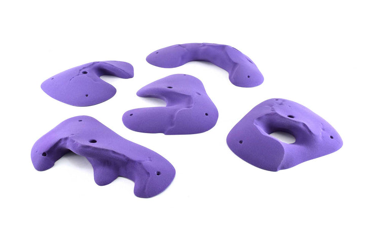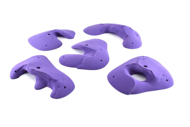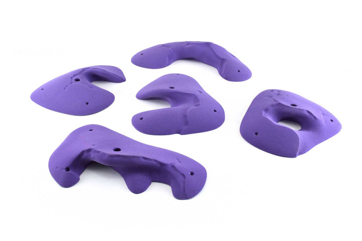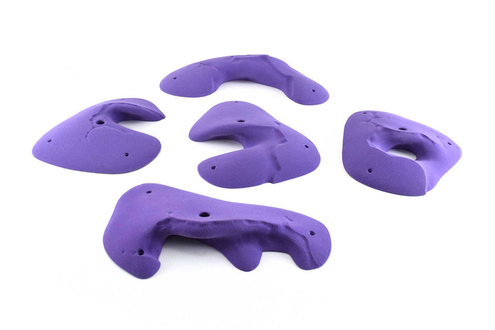 Five beautiful huecos with Moses Sandstone plating. The largest is puffy and slightly incut, it definitely has a sweet spot. The others are more incut with two that feel fairly juggy. Overall a really nice set wthat compliments other Moses Sandstone and Kilter Sandstone lines.