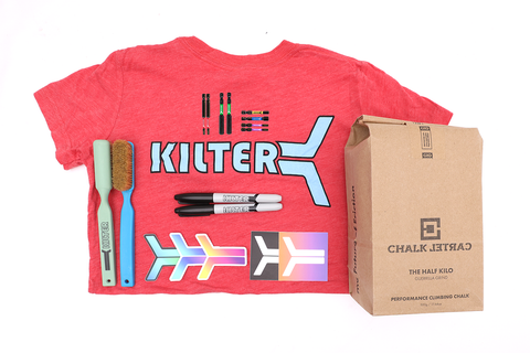 Add a Setter Pack - $75 value. Items in the Setter Pack may vary in color and style. You will receive 1 shirt*, 2 brushes, 2 sharpies, a variety of 20 stickers, 2 Hex Bits (3" long), 1 Hex Bit (2" long), 2 T25 Bits (3" long) and 2 T25 Bits (2" long) and a bag of Chalk Cartel Chalk. *For the shirt, please request long sleeve, t-shirt, or tank and put your size in the notes box at checkout and we'll follow up with style options to choose from. You can also request Kilter or Urban Plastix brush and make any sticker requests you have and we'll do best to fulfill.