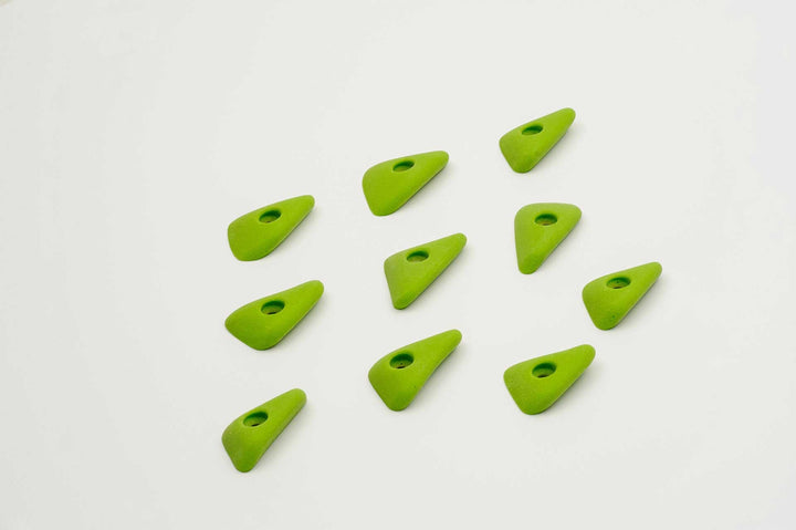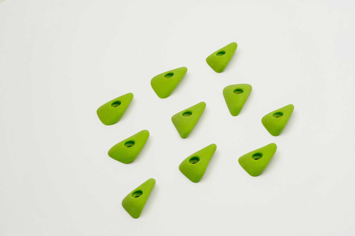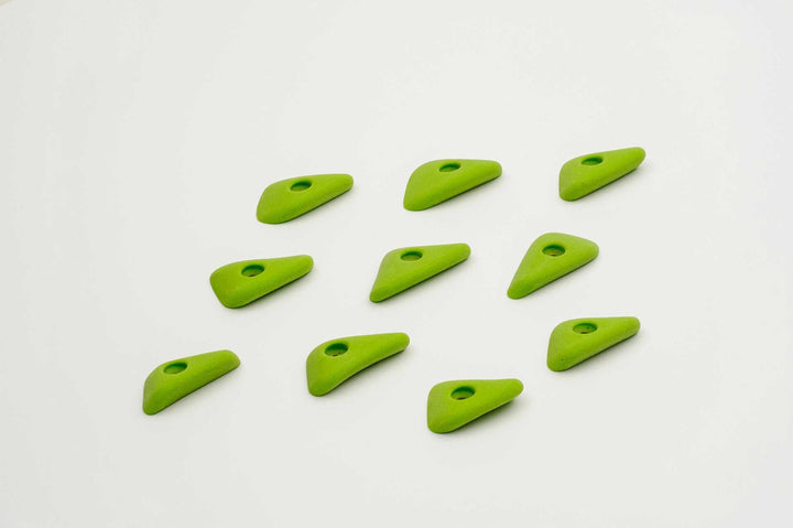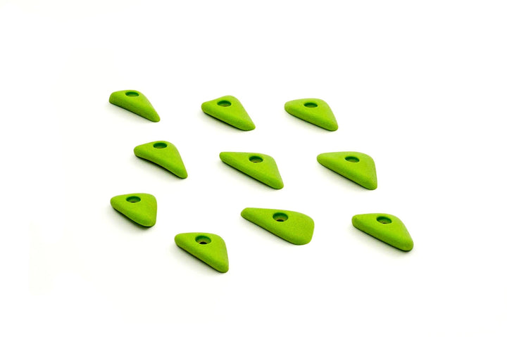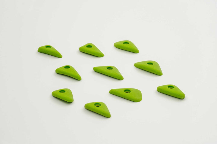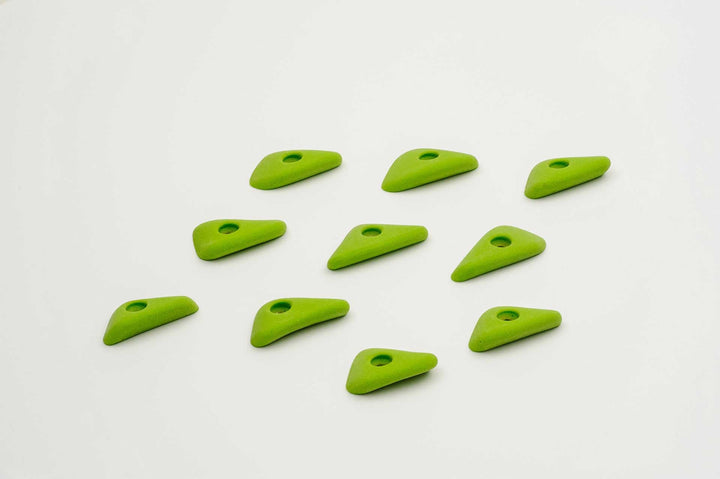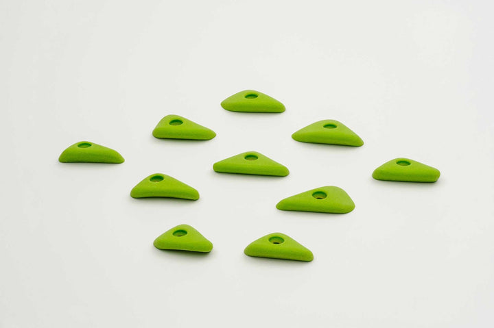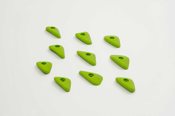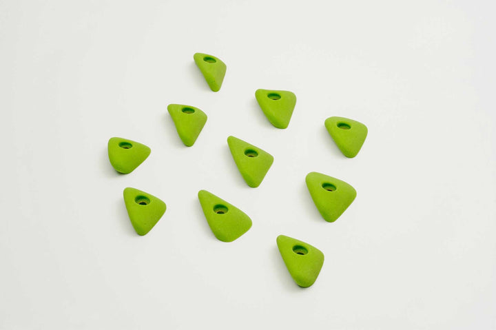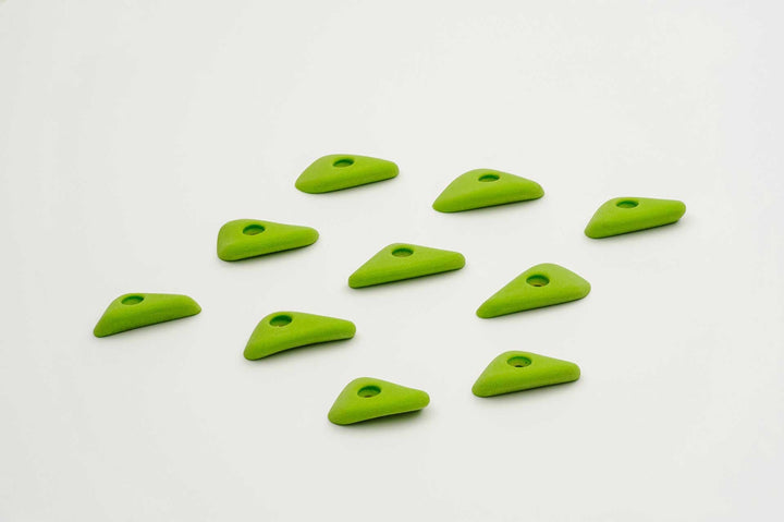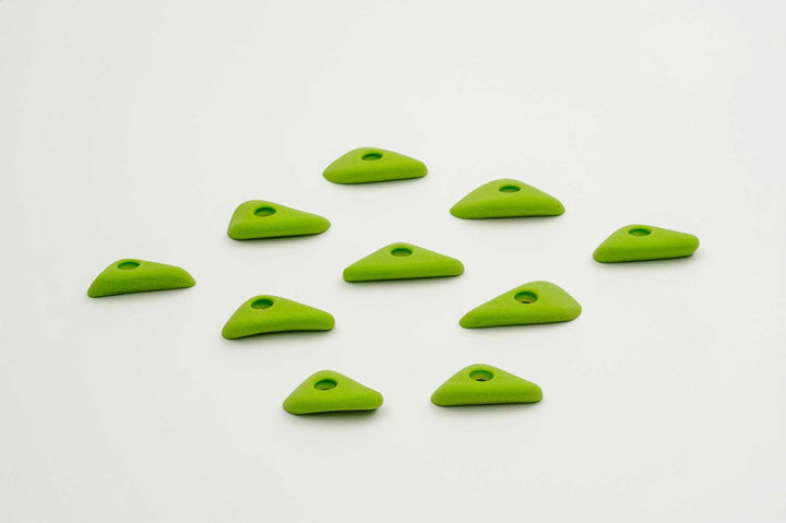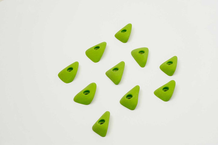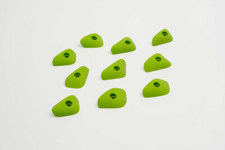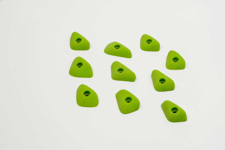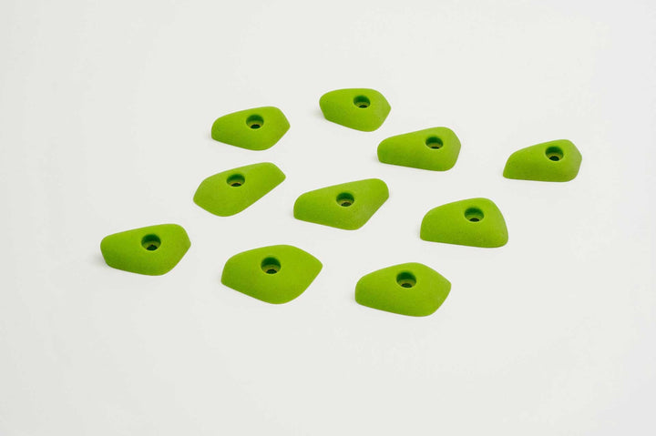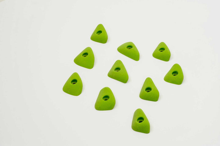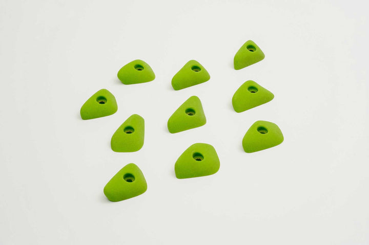 Incut little triangle edges with a thumb if you want to pinch them. Rounded edge radius for comfort. 4 finger full pad grabs, great for training.