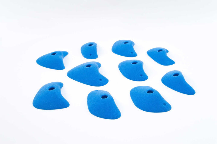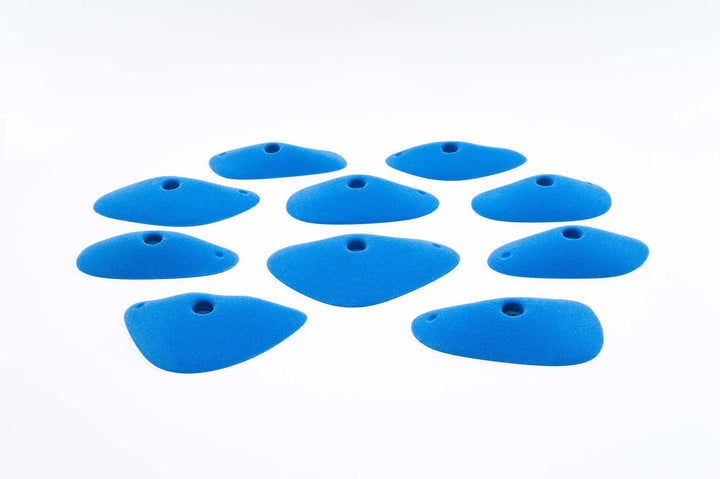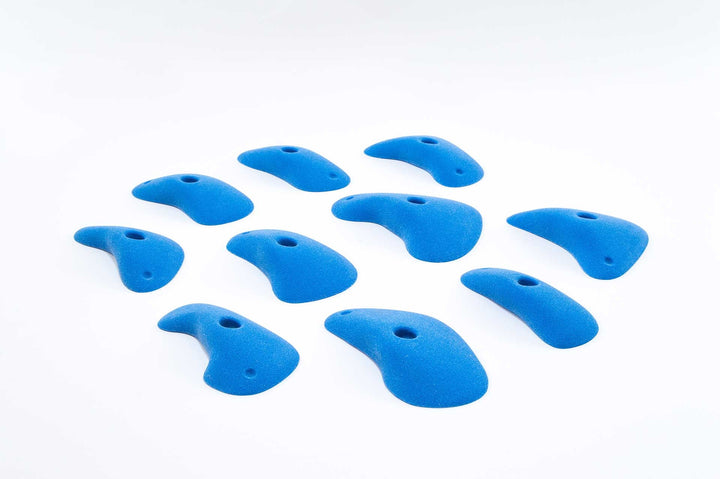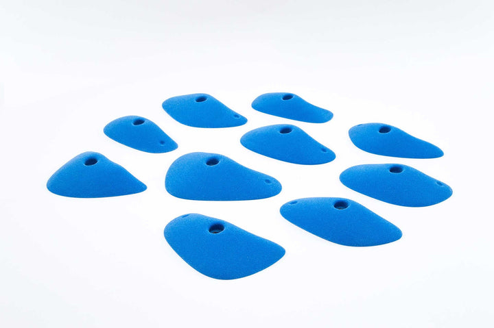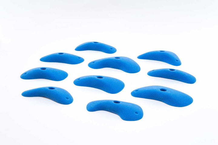 Little edges that you have to keep working for. Some feel slopey, most feel flat to slightly incut so you can use them even on slight overhangs. Also great on volumes and angle changes. Curved ends require more precision and also give you something to push against. One of Jackie's favorite sets.