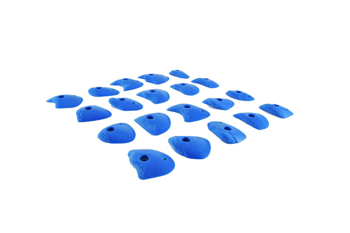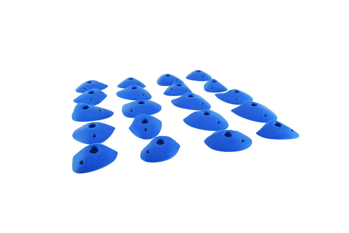 Dual-tex version of our flat to incut set of XS medium grain granite holds. Granite texture on the usable surface. Great as steep wall or easier feet and challenging as small hands. The dual-tex makes them even easier to set as clearly directional.