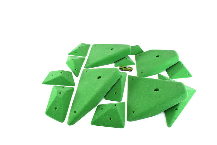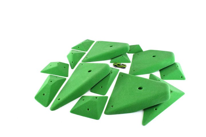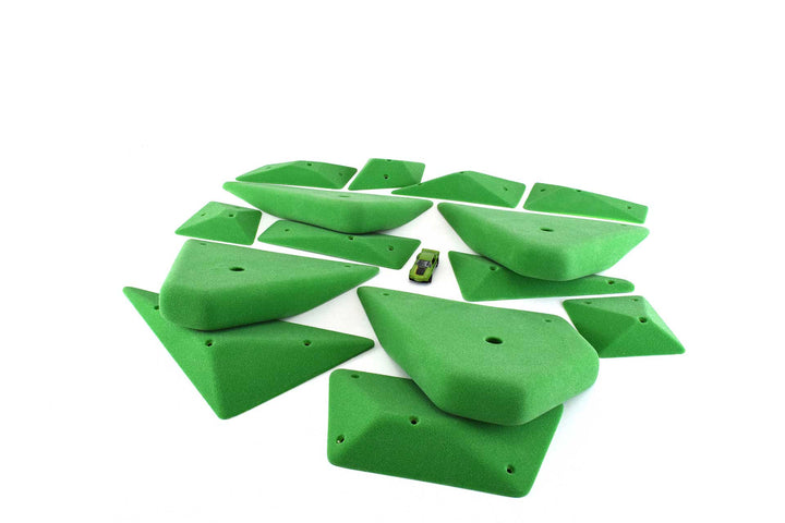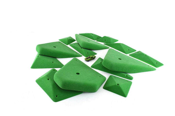 This is the future of routesetting. Complex system set with 4 big rounded geo jugs and a set of 10 rounded geo jibs that can be used to modify the jugs' positivity and usability. The jibs are also great on their own or on volumes.